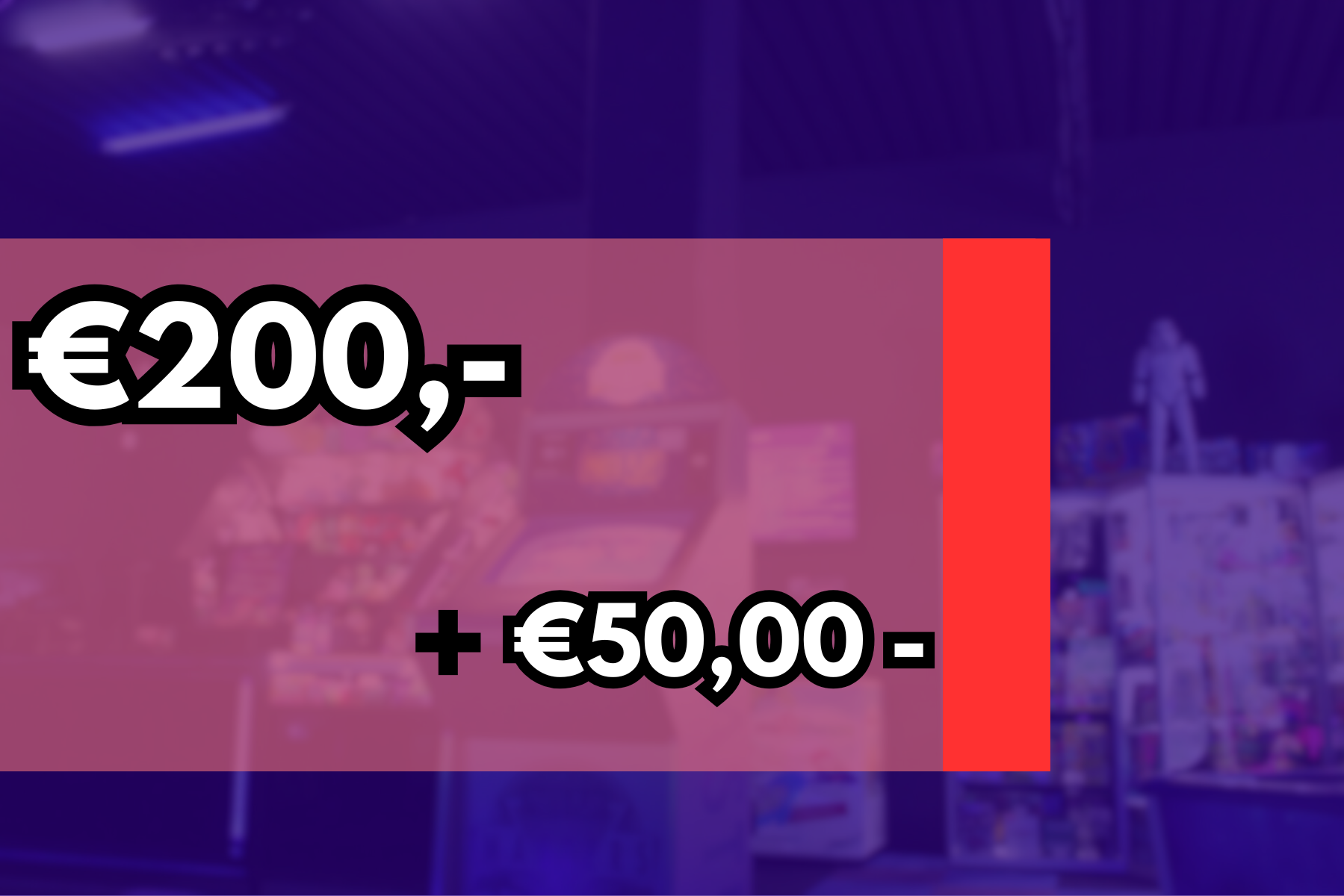 Dit arrangement is ontworpen zodat je onafgebroken plezier kunt hebben tijdens het spelen, waarbij het tegoed in één keer opgemaakt moet worden, zonder de mogelijkheid om tickets of prijzen te winnen. Maximaal één speler per gamekaart.